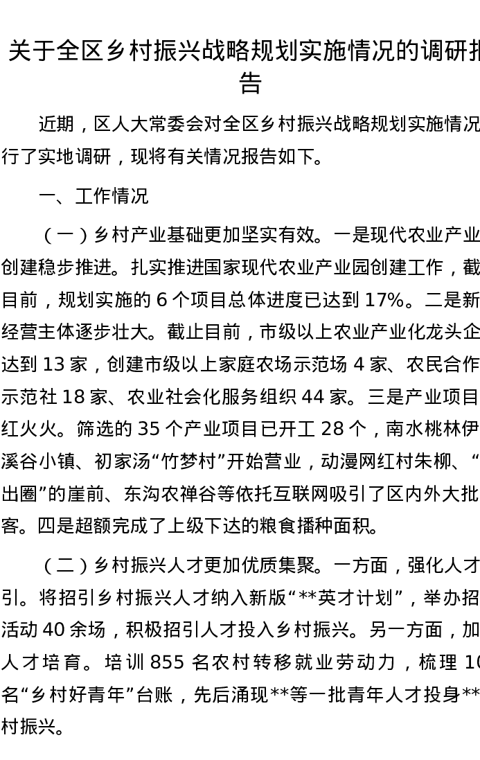 20221116关于全区乡村振兴战略规划实施情况的调研报告
