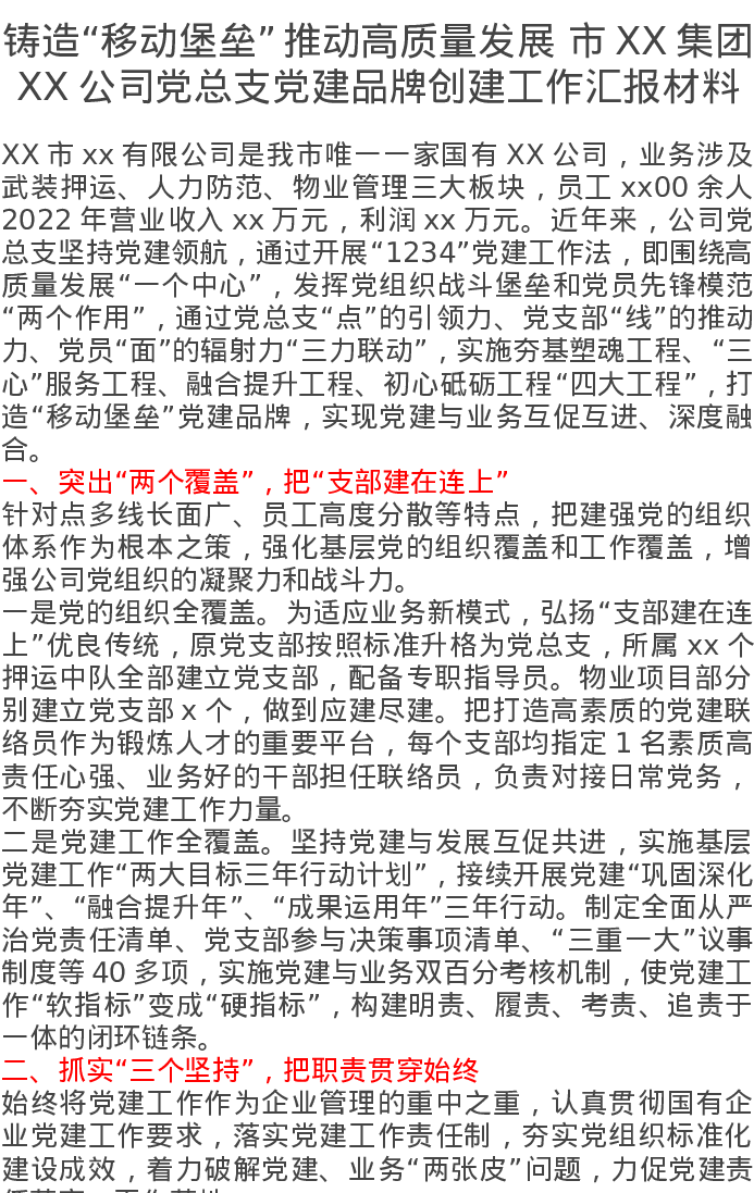 XX公司党总支党建品牌创建工作汇报