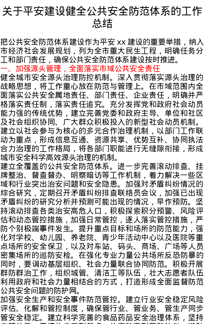 关于平安建设健全公共安全防范体系的工作总结