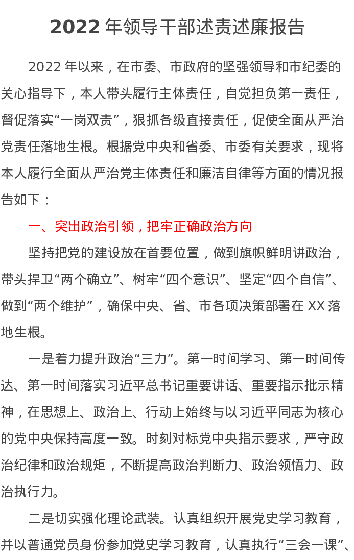 2022年领导干部述责述廉报告