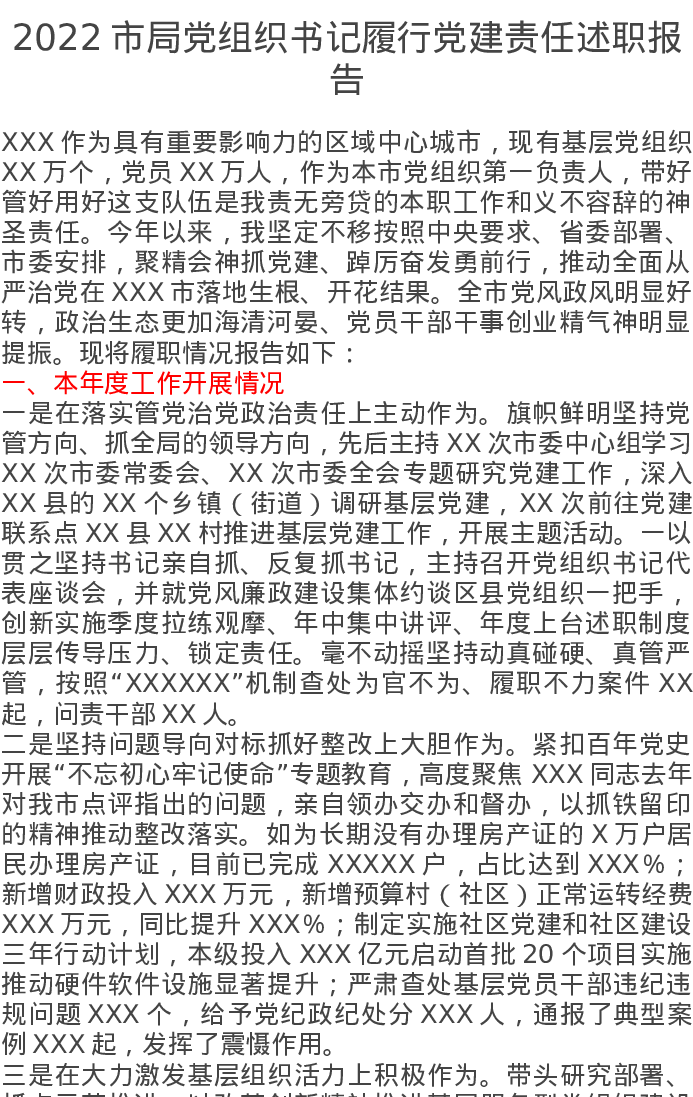 2022市局党组织书记履行党建责任述职报告
