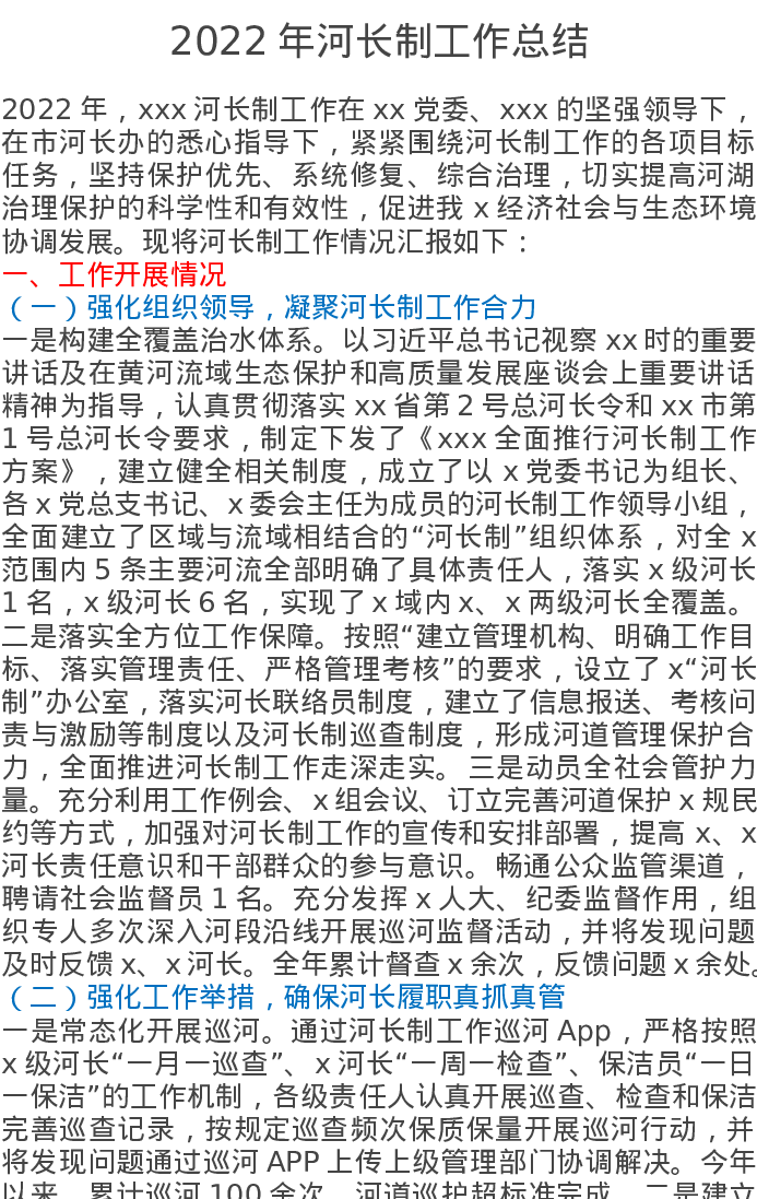2022年河长制工作总结