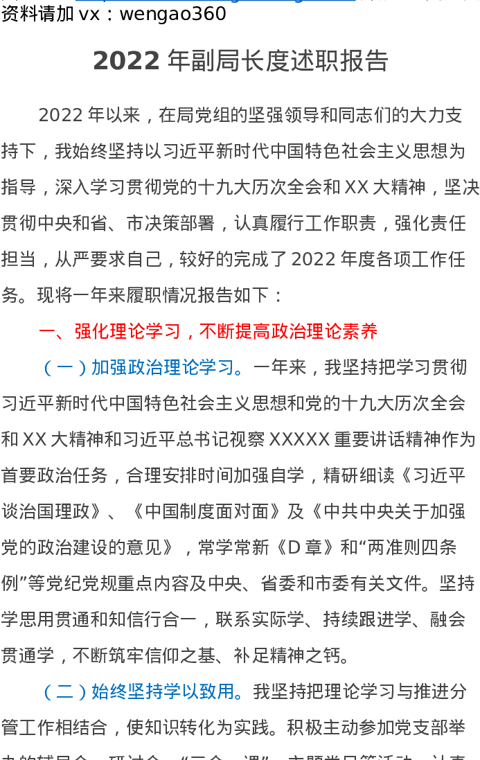 2022年副局长度述职报告