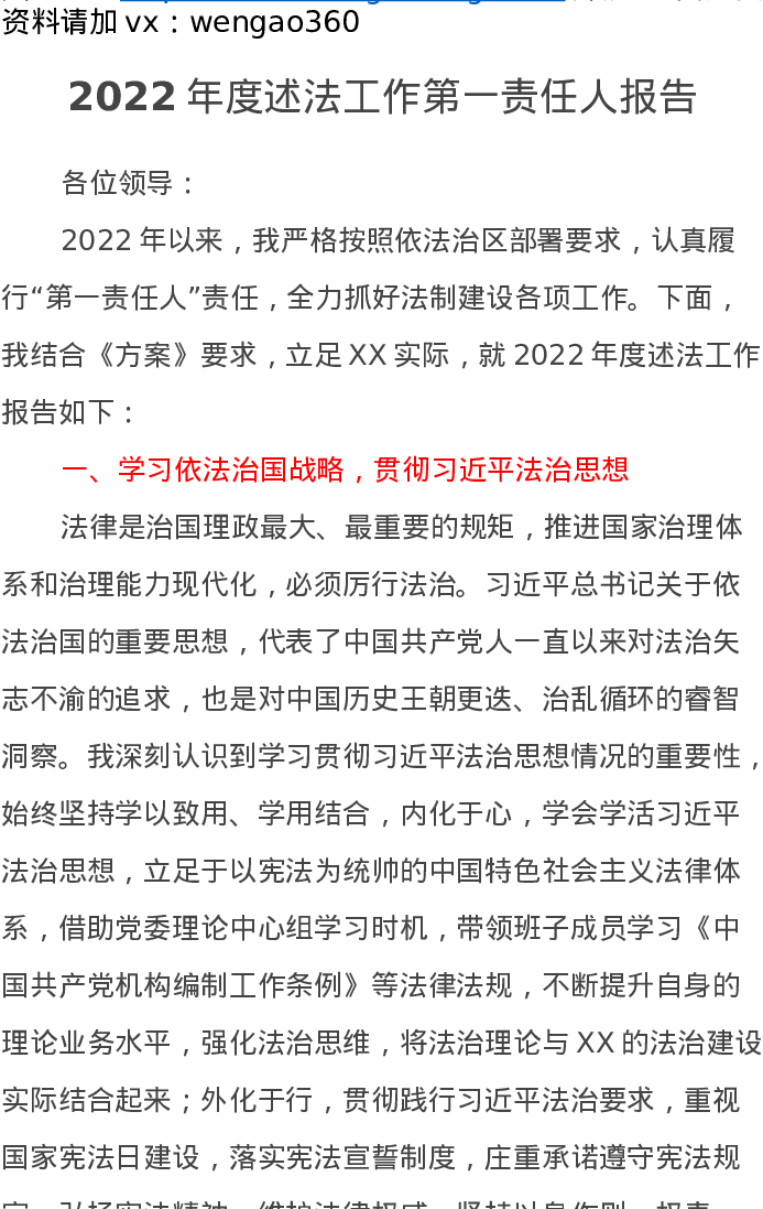 2022年度述法工作第一责任人报告