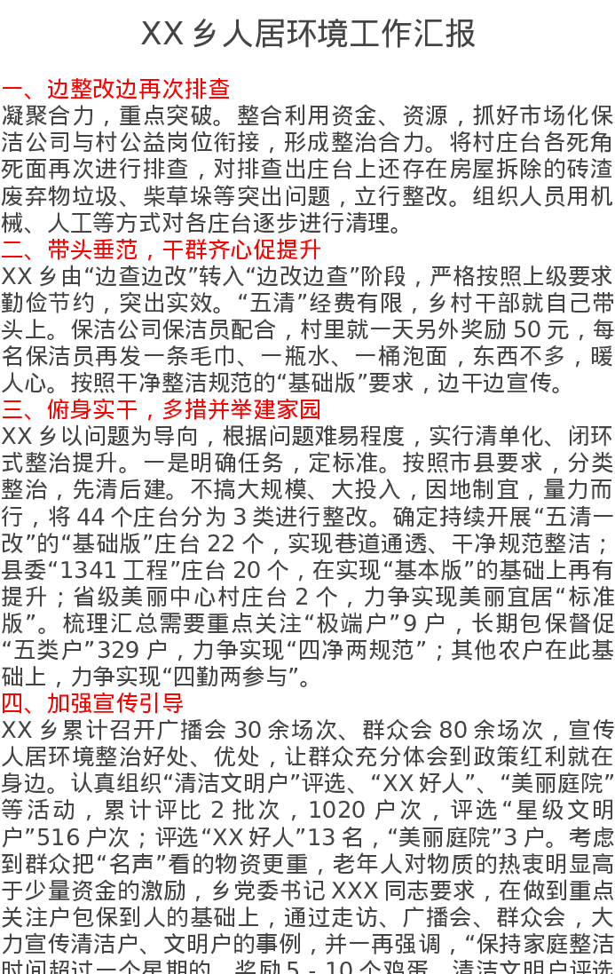 XX乡人居环境工作汇报