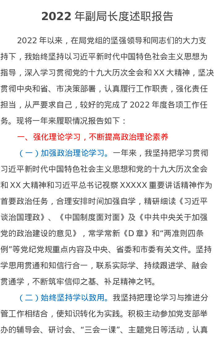 2022年副局长度述职报告