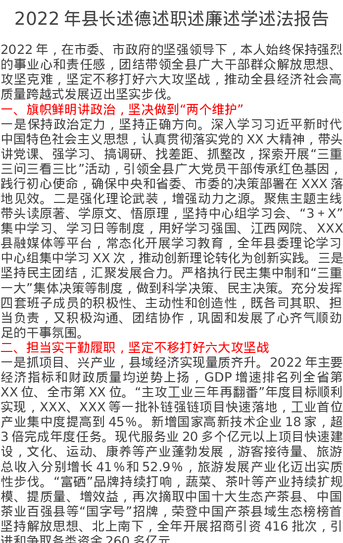 2022年县长述德述职述廉述学述法报告