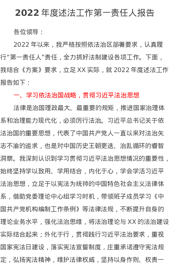 2022年度述法工作第一责任人报告