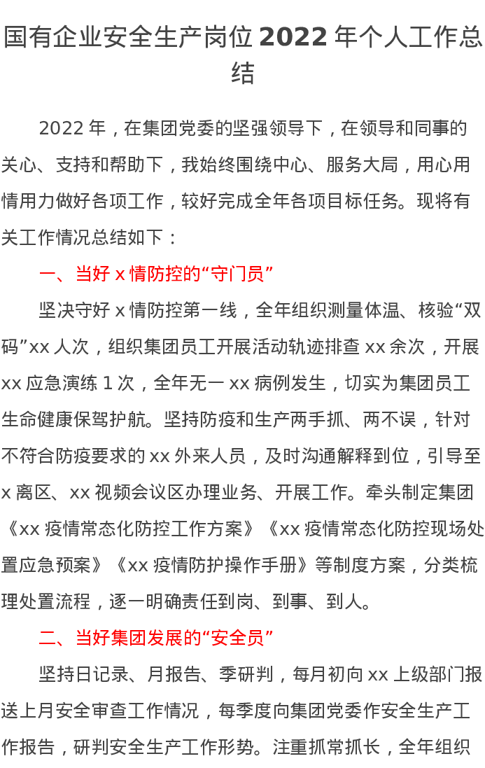 国有企业安全生产岗位2022年个人工作总结