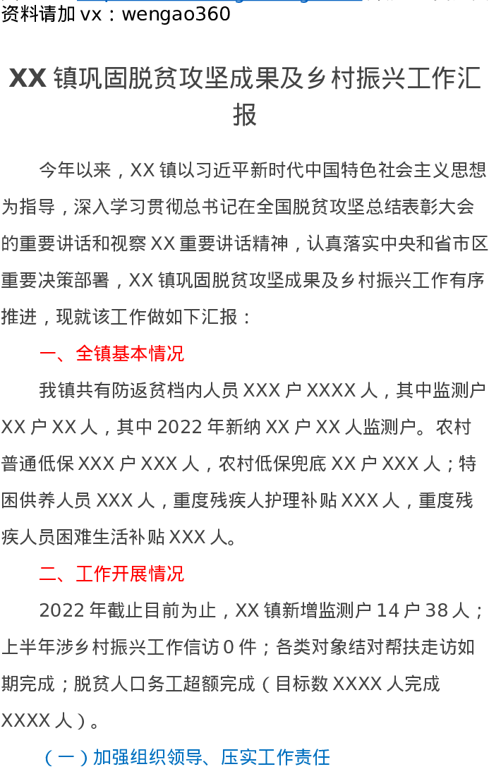 XX镇巩固脱贫攻坚成果及乡村振兴工作汇报