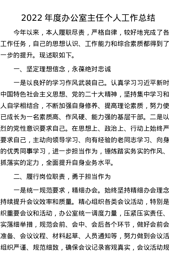 2022年度办公室主任个人工作总结
