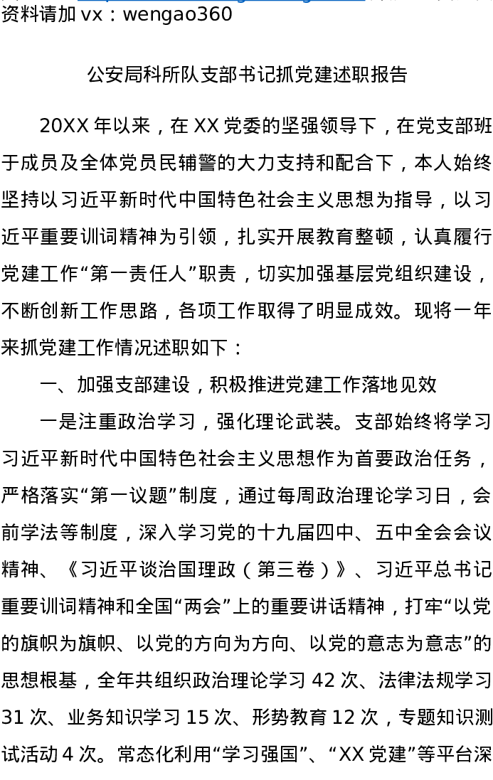 公安支部书记抓党建述职报告
