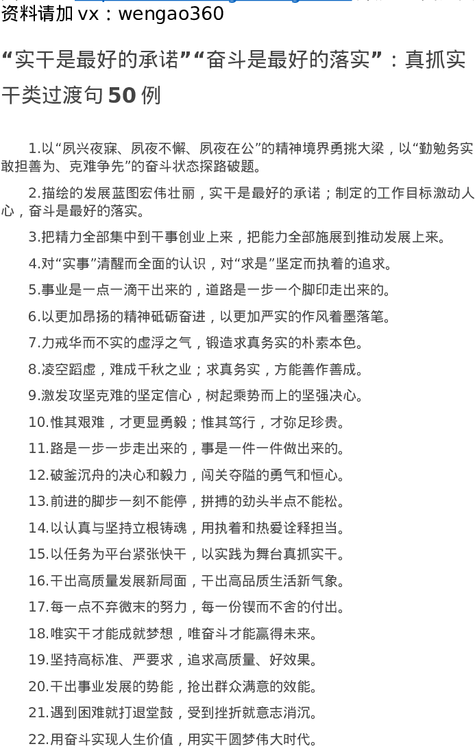 “实干是最好的承诺”“奋斗是最好的落实”:真抓实干类过渡句50例