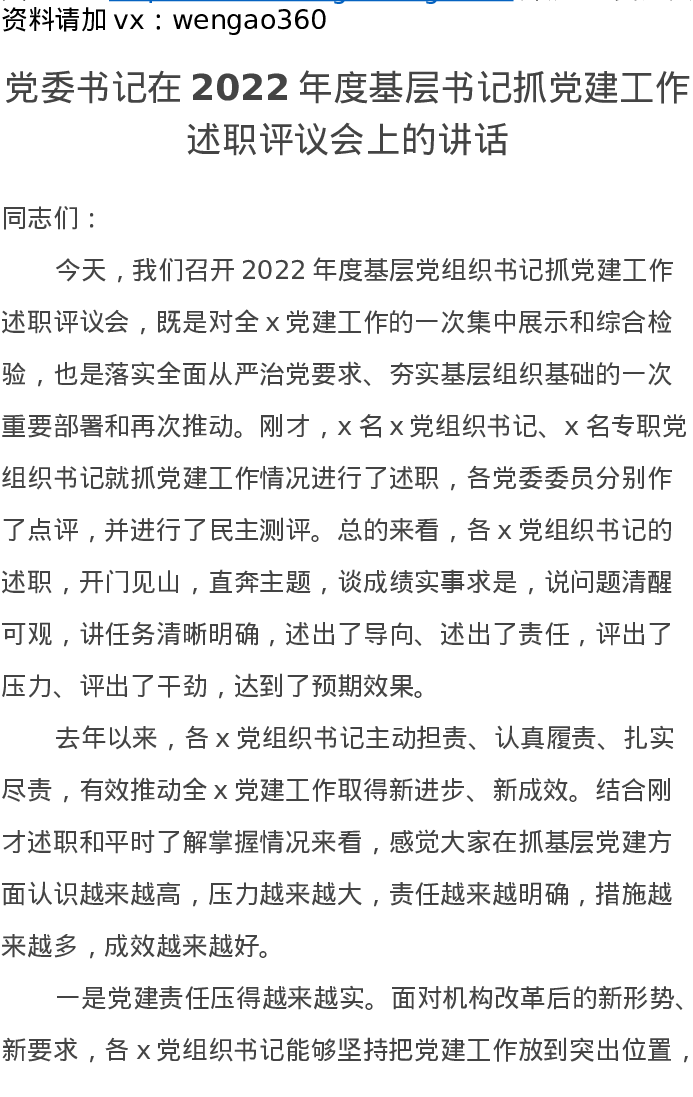 党委书记在2022年度基层书记抓党建工作述职评议会上的讲话