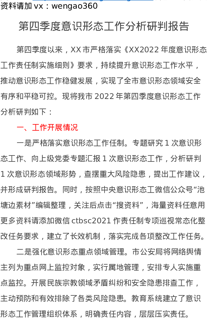 第四季度意识形态工作分析研判报告