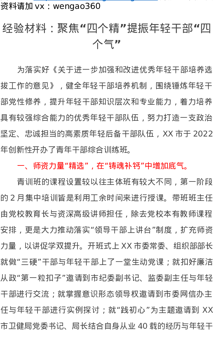 经验材料:聚焦“四个精”提振年轻干部“四个气”