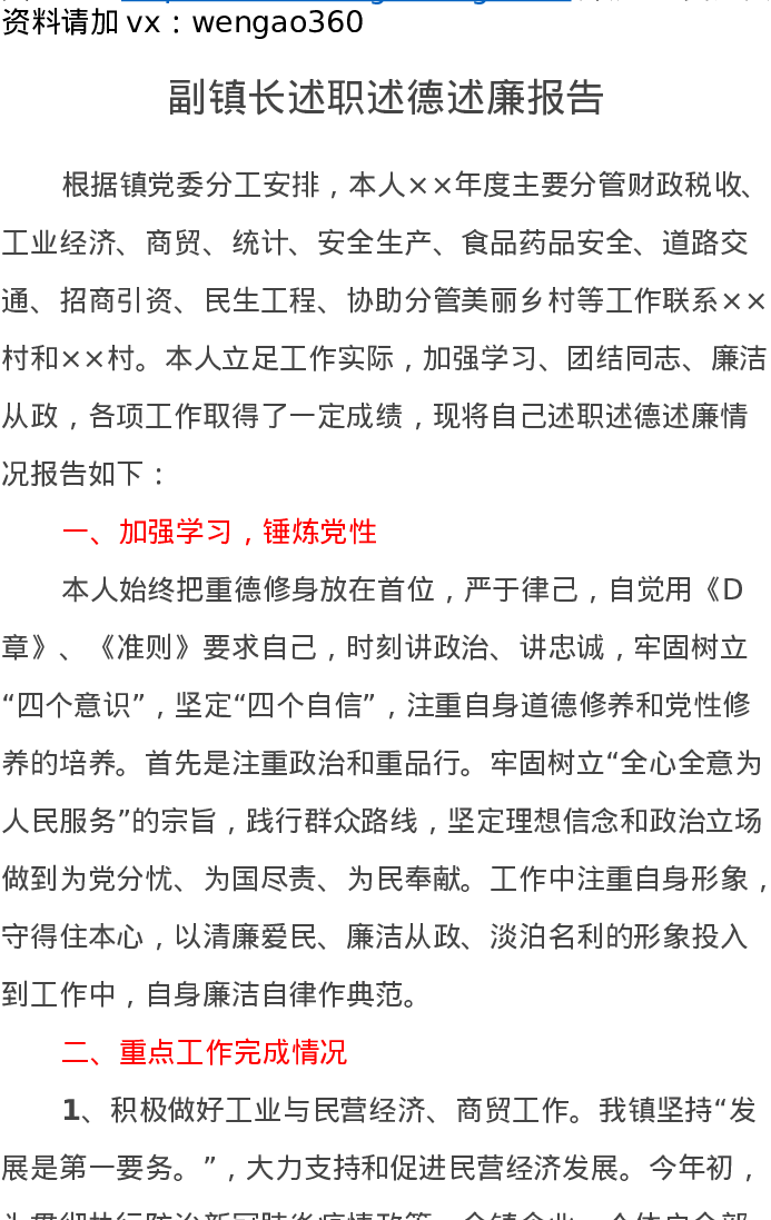 2022副镇长述职述德述廉报告