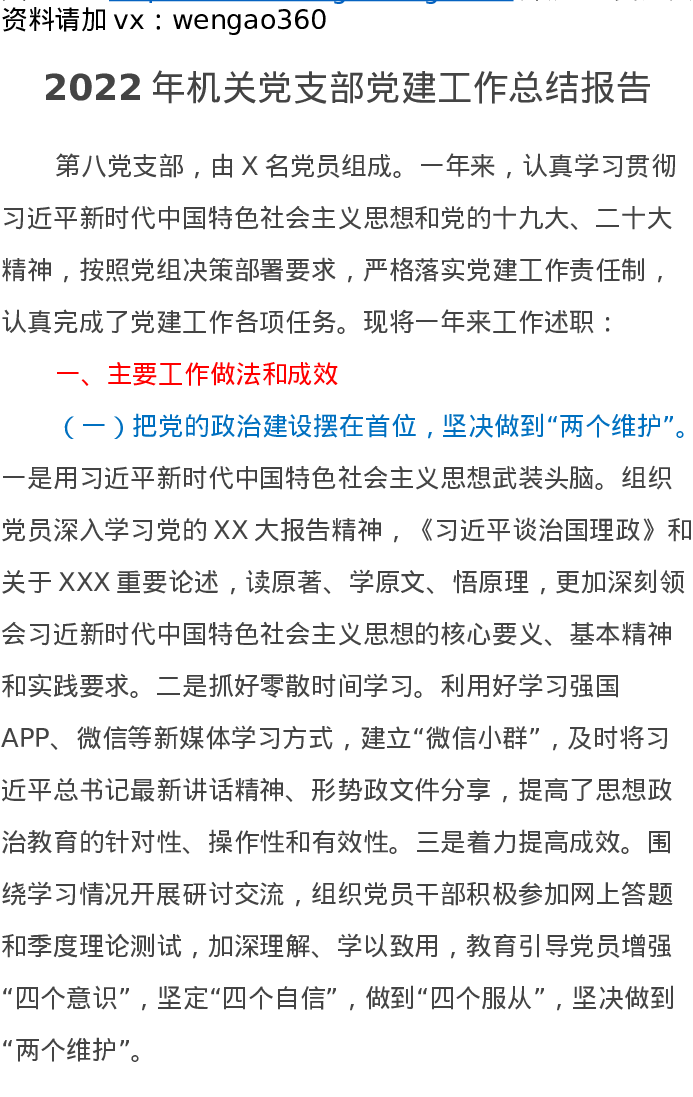 2022年机关党支部党建工作总结报告