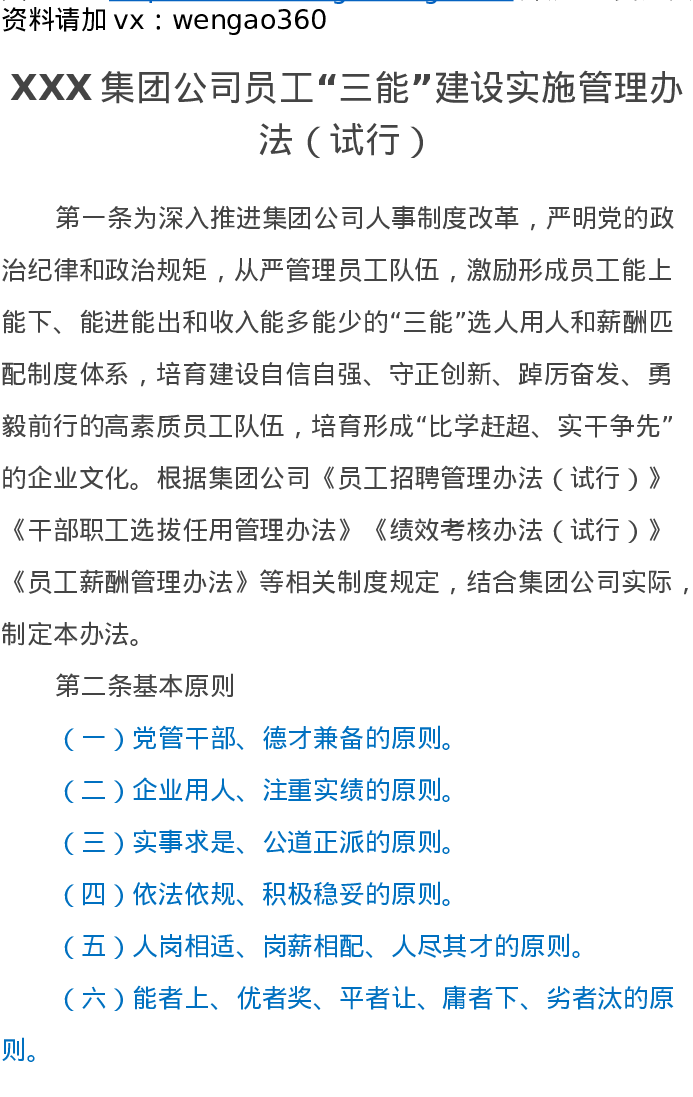 XXX集团公司员工“三能”建设实施管理办法(试行)