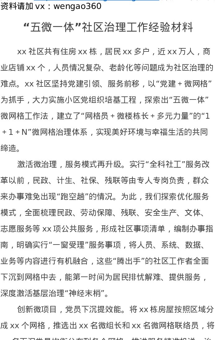 “五微一体”社区治理工作经验材料