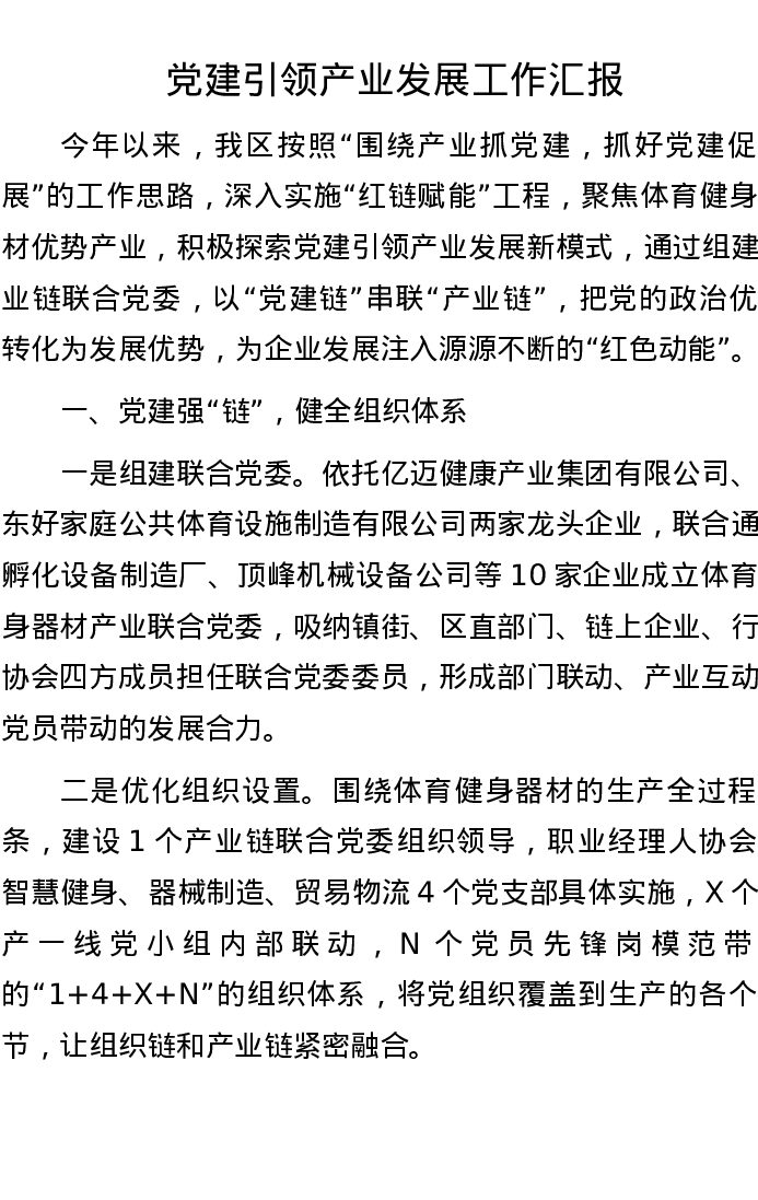 党建引领产业发展工作汇报