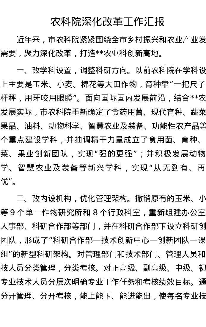 农科院深化改革工作汇报