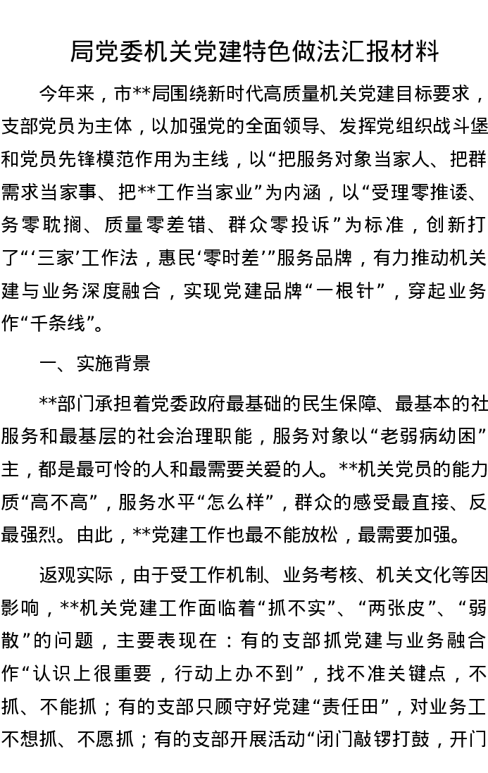 局党委机关党建特色做法汇报材料