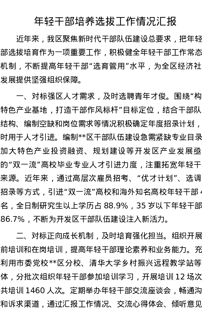 年轻干部培养选拔工作情况汇报