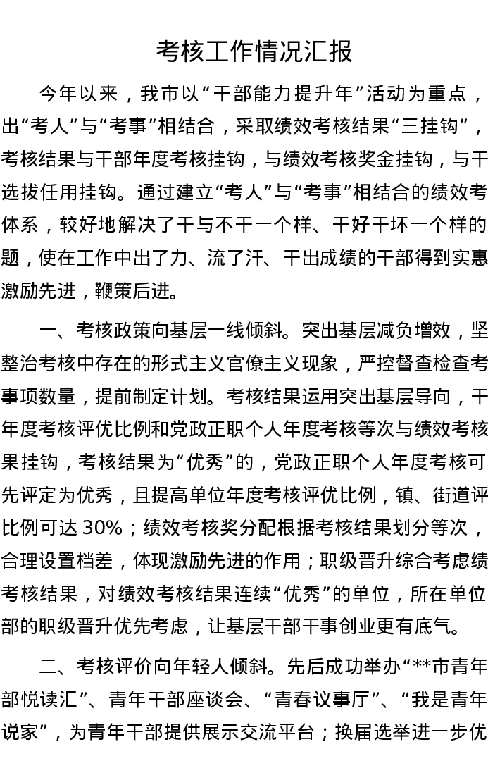 考核工作情况汇报