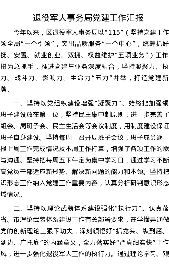 退役军人事务局党建工作汇报