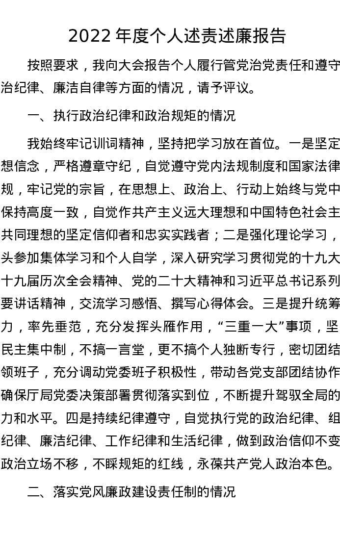 2022年度个人述责述廉报告