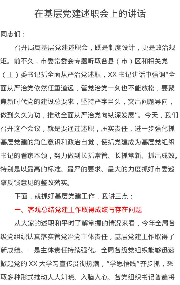 在基层党建述职会上的讲话