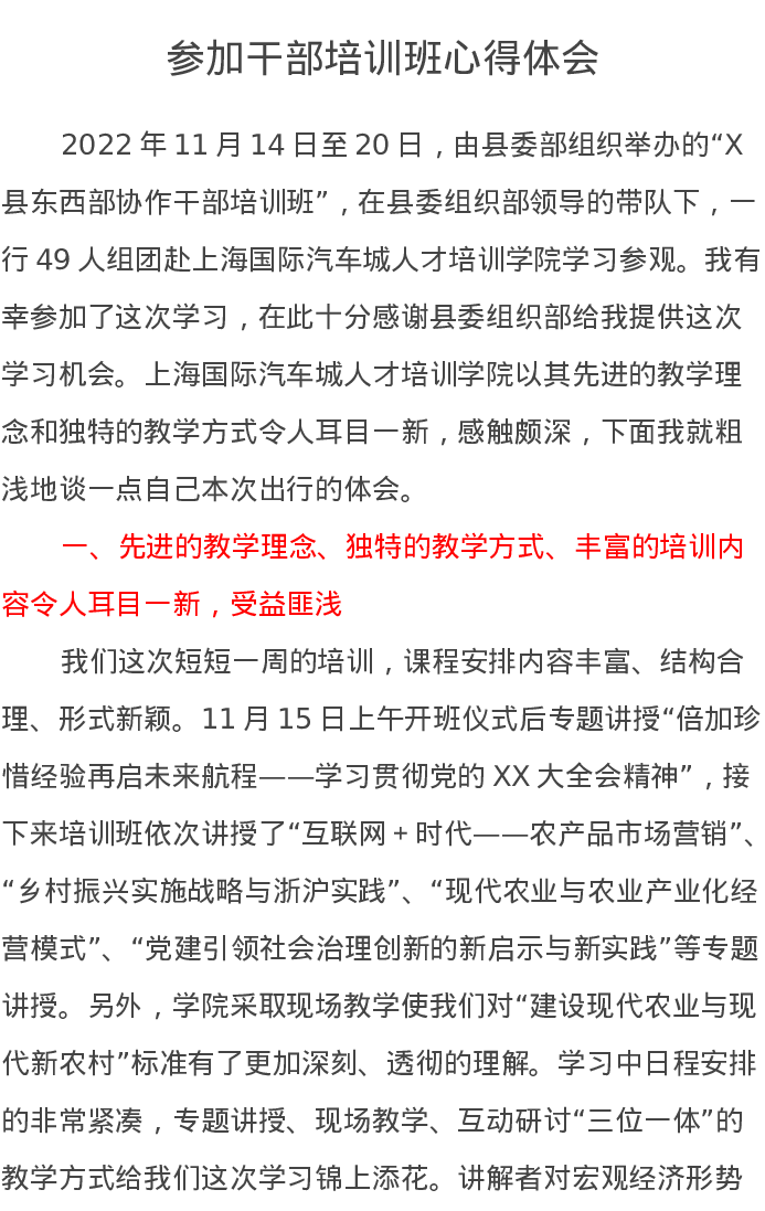 参加干部培训班心得体会