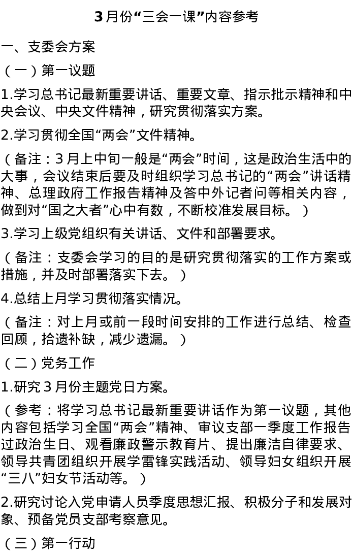 2022年3月份“三会一课”内容参考