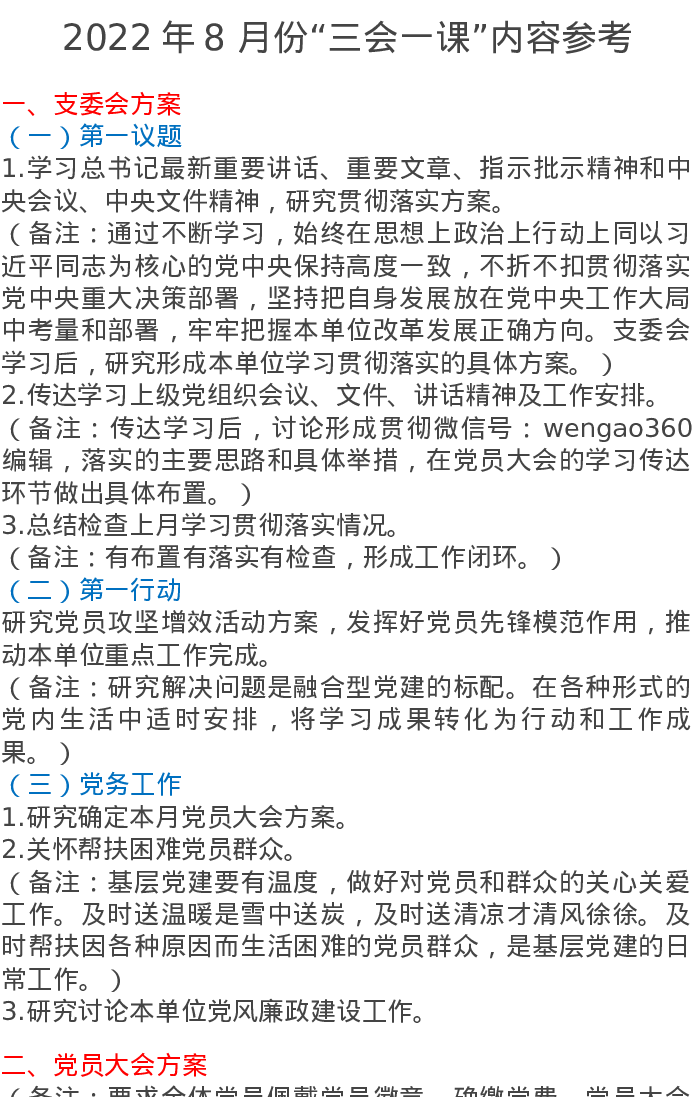 2022年8 月份“三会一课”内容参考