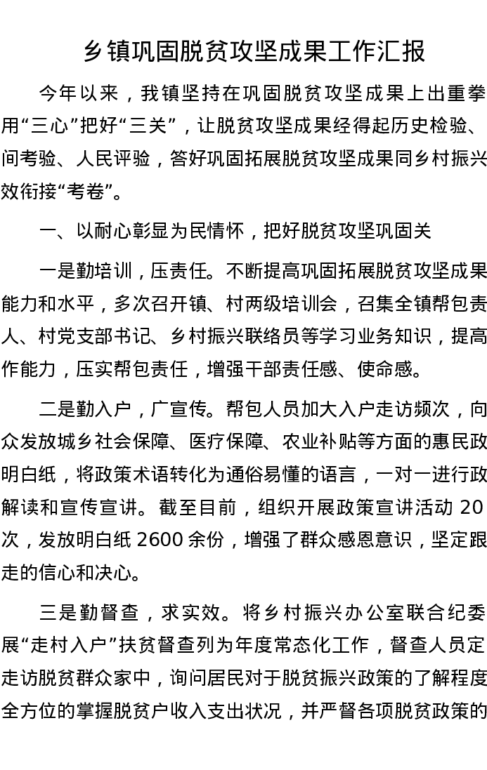 乡镇巩固脱贫攻坚成果工作汇报
