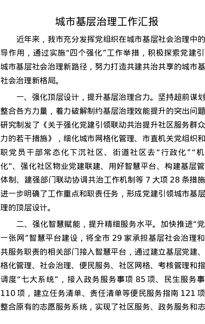 城市基层治理工作汇报