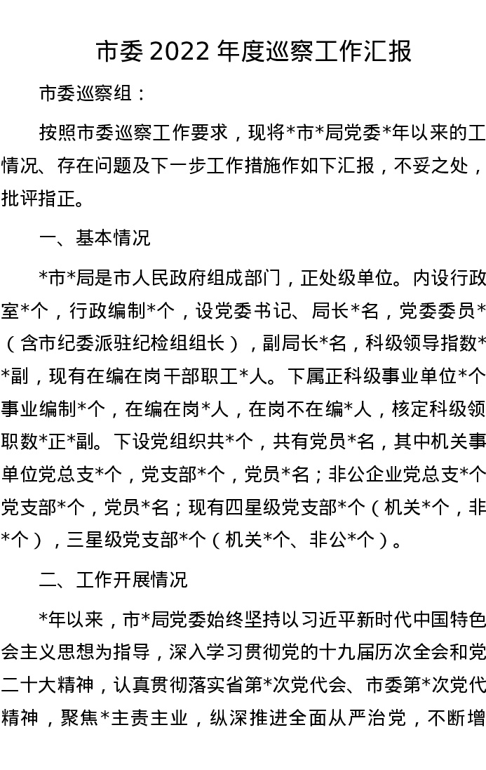 市委2022年度巡察工作汇报