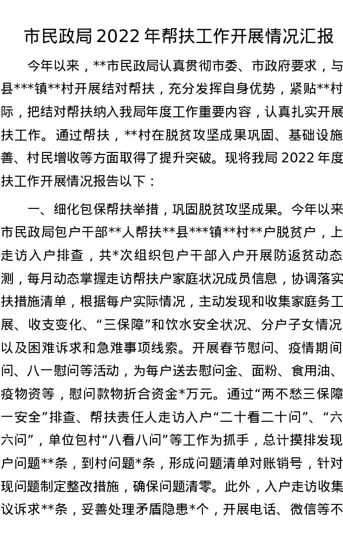 市民政局2022年帮扶工作开展情况汇报
