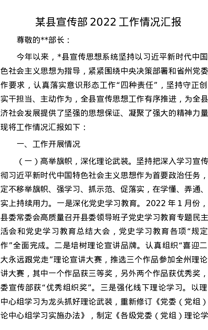 某县宣传部2022工作情况汇报