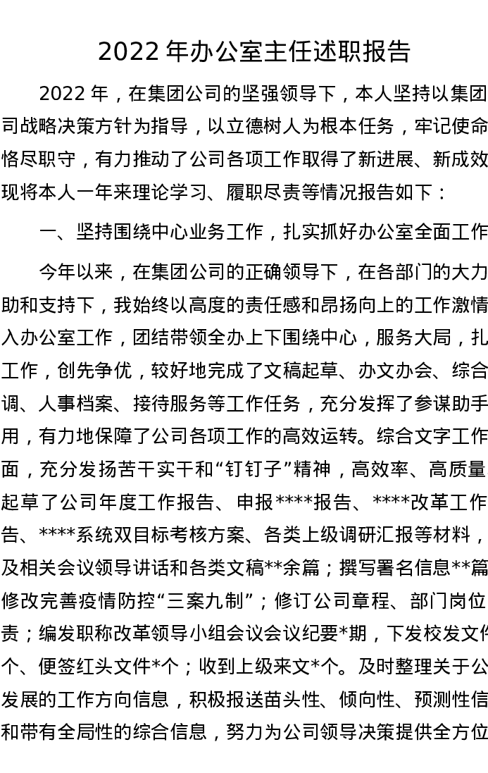 2022年办公室主任述职报告