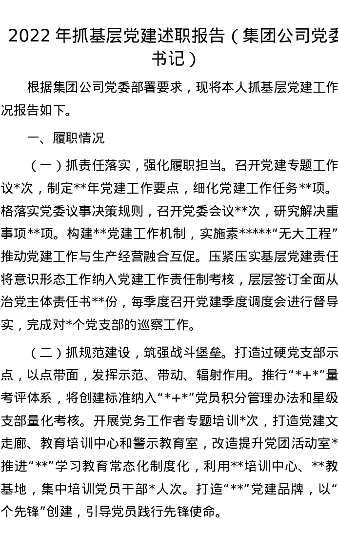 2022年抓基层党建述职报告(集团公司党委书记)