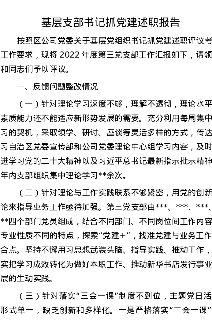 基层支部书记抓党建述职报告
