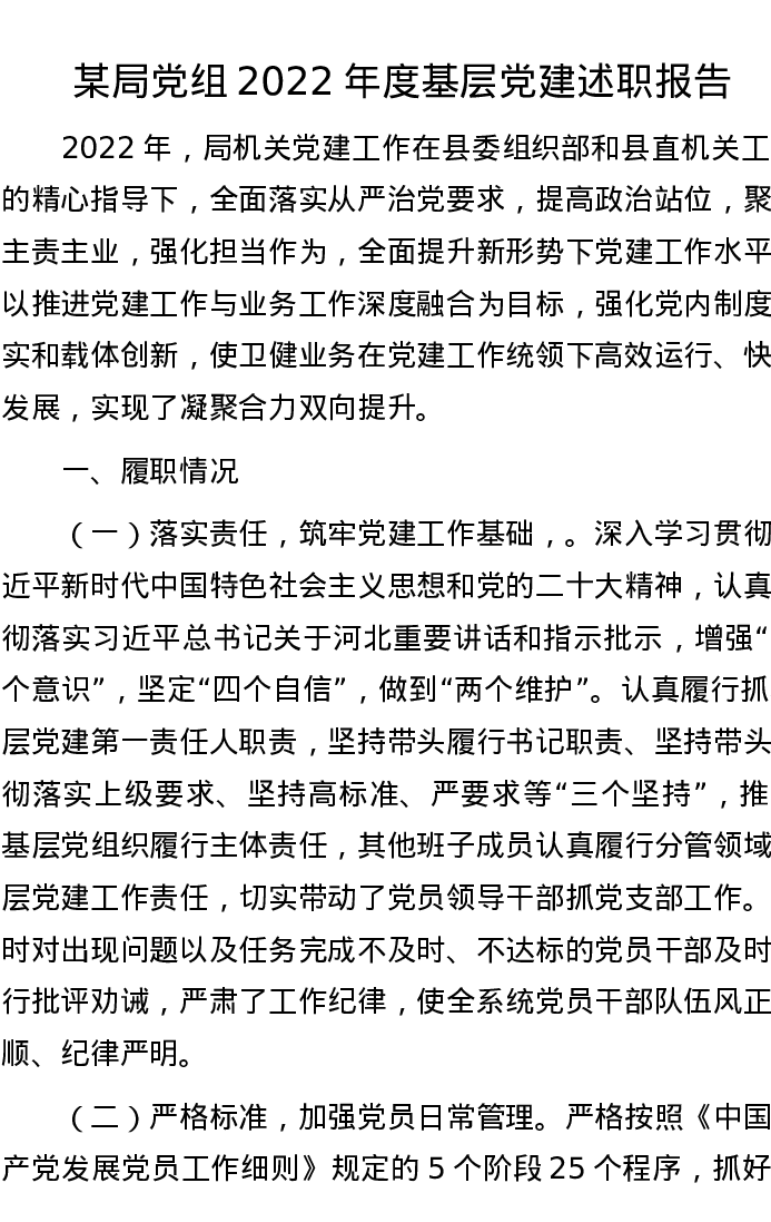 某局党组2022年度基层党建述职报告
