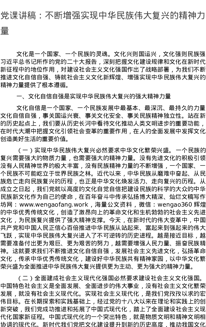 党课讲稿:不断增强实现中华民族伟大复兴的精神力量