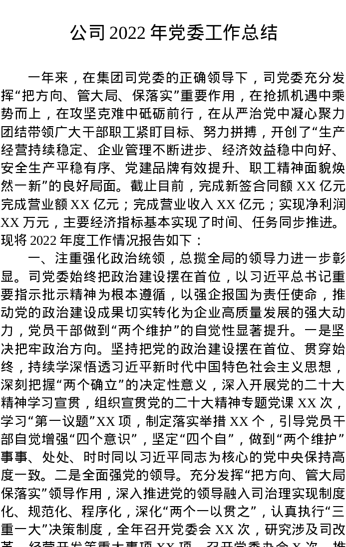 公司2022年党委工作总结