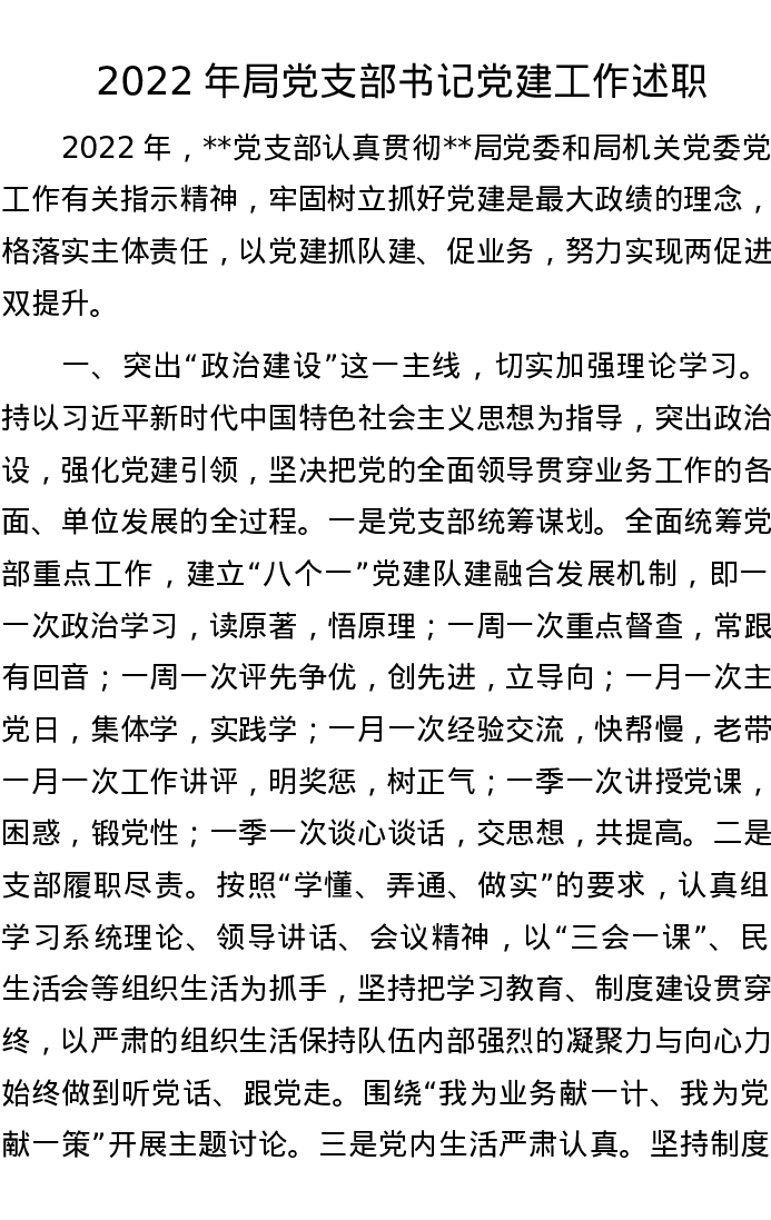 2022年局党支部书记党建工作述职