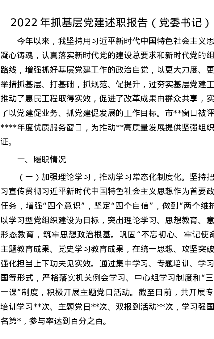 2022年抓基层党建述职报告(党委书记)