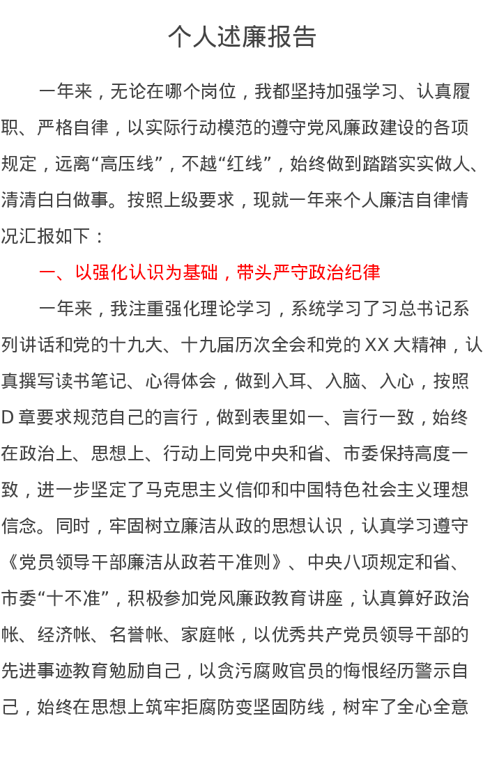 2022年XX县委书记个人述廉报告