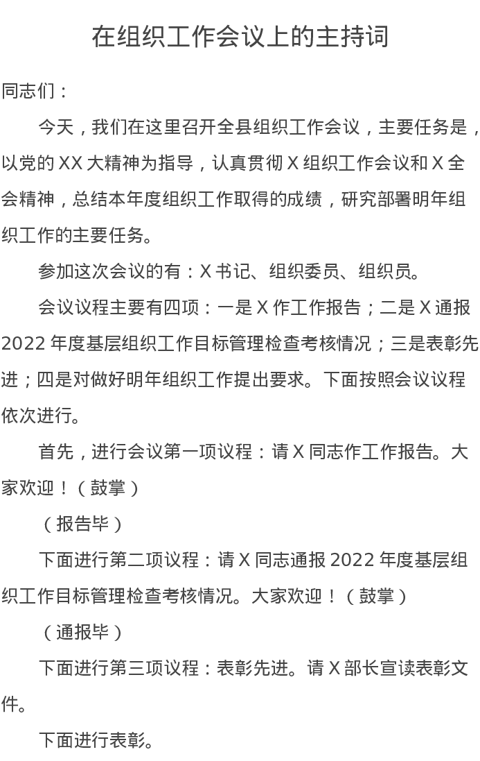 在组织工作会议上的主持词